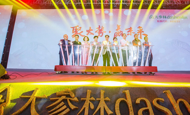 DB视讯药业集团董事长刘景萍女士与大参林医药集团董事长柯云峰先生、中国医药商业协会执行会长付明仲女士等嘉宾共同开启了“聚大势•赢未来"大参林工商合作峰会的大幕。